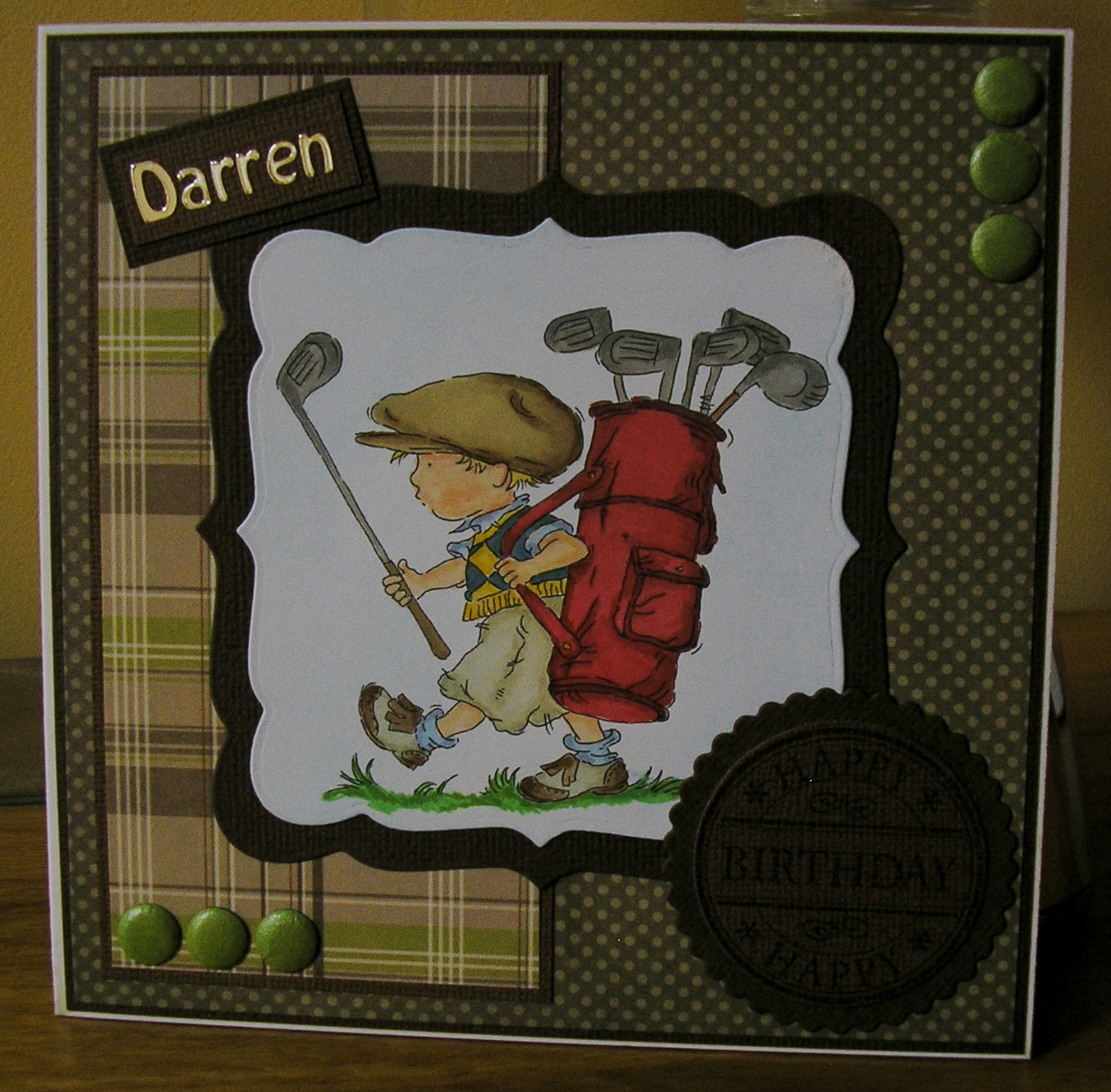 The image is by Mo Manning coloured with Promakers....as is the sentiment...Happy Birthday is from a set by Hero Arts and the papers are My Minds Eye...and the ribbon i have recycled from a gift!!!....just the right colour...